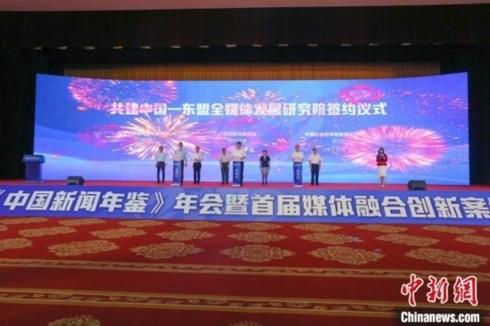 圖為共建中國(guó)—東盟全媒體發(fā)展研究院簽約儀式。陳秋霞攝