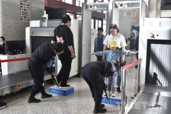圖為乘客在安檢 攝影:次旦拉姆