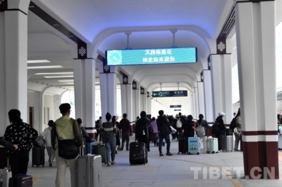 圖為乘客在林芝火車站 攝影:次旦拉姆