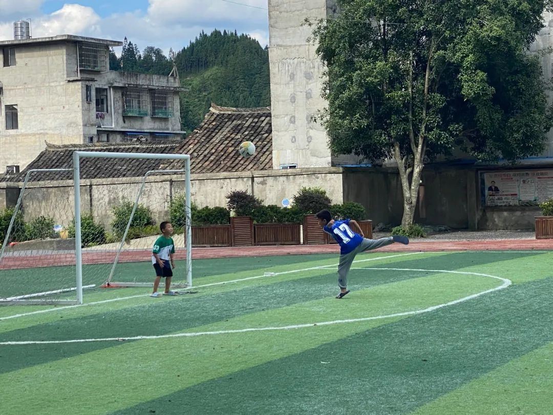 正值暑假,在榕江縣一所小學(xué)的足球場(chǎng)上,王同學(xué)和錢同學(xué)正在踢足球。今年七歲的王同學(xué)剛剛幼兒園畢業(yè),平時(shí)愛看足球,也愛踢足球,“長(zhǎng)大以后,我也要踢‘村超’!”今年十二歲的錢同學(xué)則是小學(xué)足球校隊(duì)的成員,也常常看“村超”比賽,“希望以后能代表校隊(duì)拿到一個(gè)冠軍?!?/p>