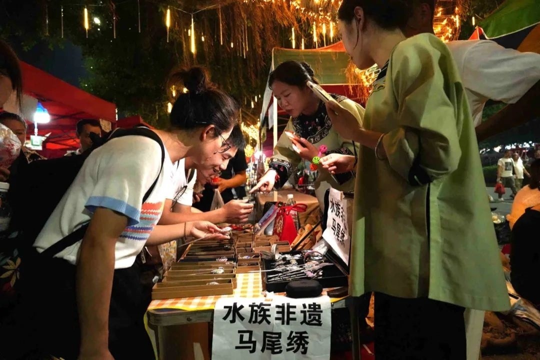 一位賣榕江卷粉、芋頭糕等特色小吃的小吃攤攤主說(shuō):“我們從早忙到晚,擺攤到凌晨1點(diǎn)鐘左右,人太多了,一天能賣幾百碗?!?/p>