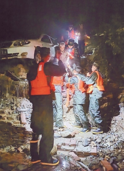 因暴雨引發(fā)山體滑坡,北京市門頭溝區(qū)妙峰山鎮(zhèn)水峪嘴村大量房屋被沖垮。武警北京總隊機動某支隊分散摸排村莊、搜救傷員。經(jīng)過22個小時持續(xù)奮戰(zhàn),轉移受災村民107人,轉運村民物資財產1100余件。
