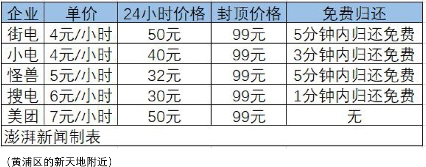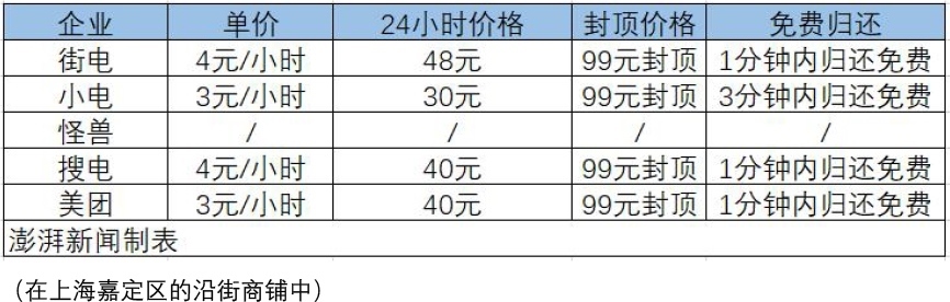 上海的共享充電寶如何收費(fèi)?澎湃新聞?dòng)浾邔?duì)各大品牌的共享充電寶價(jià)格做出統(tǒng)計(jì)。
