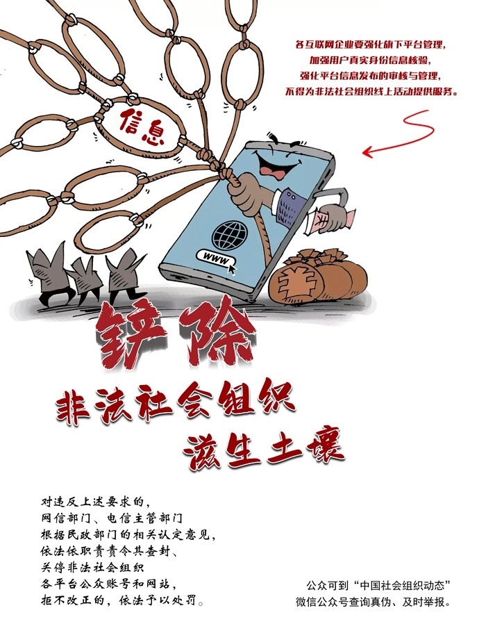 人民網(wǎng)北京8月7日電 近日,民政部社會組織管理局圍繞近期發(fā)生的非法社會組織活動進(jìn)行提醒,要求各地各相關(guān)部門進(jìn)一步提高政治站位,確保打擊整治工作落到實(shí)處。公眾可到“中國社會組織動態(tài)”微信公眾號查詢真?zhèn)?、及時舉報。(宋子節(jié) 實(shí)習(xí)生李珂)