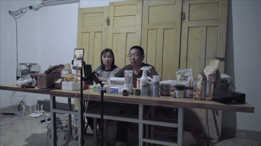 章榮高少言寡語,即便是帶貨,念完產(chǎn)品名字,極限也就加上三四個形容詞。擺在他正前方、距離不到一米的提示板上,幾乎囊括了他所有的直播“臺詞”,那是親戚幫忙寫的。葉麗鳳坐在丈夫旁邊,一言不發(fā)、臉色蒼白,有時甚至打起了瞌睡。她不識字,看不懂產(chǎn)品介紹、粉絲留言。