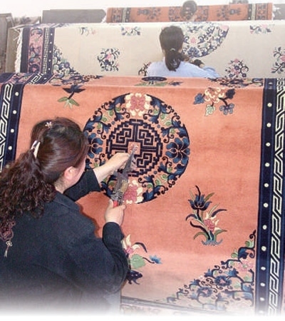 鹽池縣一家地毯生產企業(yè)的工人在制作羊毛地毯。鹽池縣委宣傳部提供