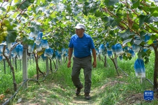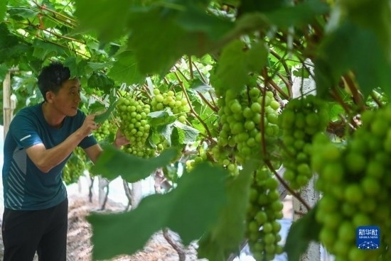 8月20日,在諸暨市姚江鎮(zhèn)紫草塢村阿群家庭農(nóng)場(chǎng)的葡萄大棚內(nèi),種植戶(hù)壽怒濤查看葡萄的成熟度。壽怒濤通過(guò)農(nóng)技培訓(xùn)學(xué)習(xí)葡萄種植新技術(shù),提高葡萄的口感和產(chǎn)量。