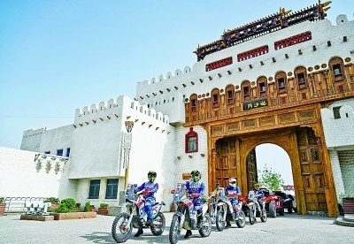 新疆和田地區(qū)約特干故城景區(qū),2023年中國環(huán)塔(國際)拉力賽參賽代表參加旅游展示活動(dòng)。新華社發(fā)