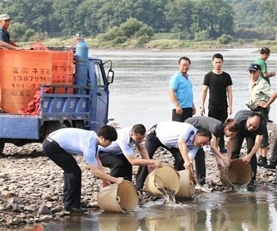弋陽(yáng)法院法官聯(lián)合相關(guān)部門(mén)開(kāi)展增殖放流活動(dòng)。