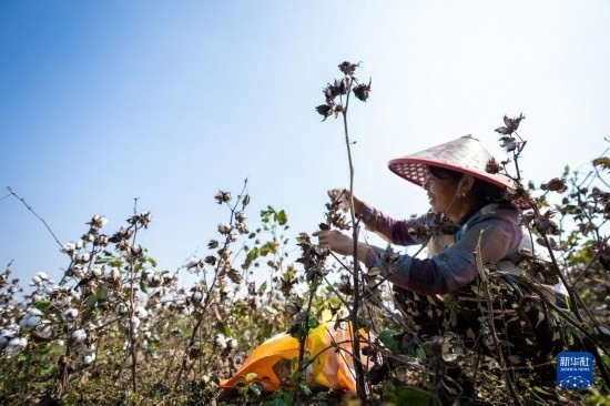 金秋十月,湖南省益陽(yáng)市南縣種植的4萬(wàn)余畝棉花相繼進(jìn)入采收季,當(dāng)?shù)孛揶r(nóng)趁著晴好天氣采摘棉花,田間地頭一片忙碌的景象。