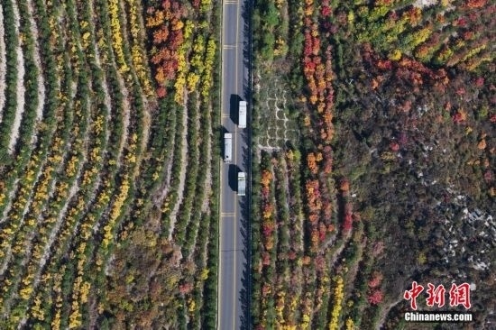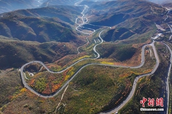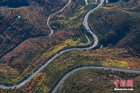 10月15日,航拍山西省太原市天龍山網紅橋秋景絢麗。近日,天龍山迎來秋景最佳觀賞期。中新社記者 武俊杰 攝