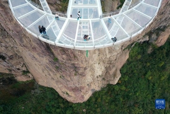 10月19日,游客在河南寶泉旅游度假區(qū)體驗(yàn)“云崖漫步”項(xiàng)目。