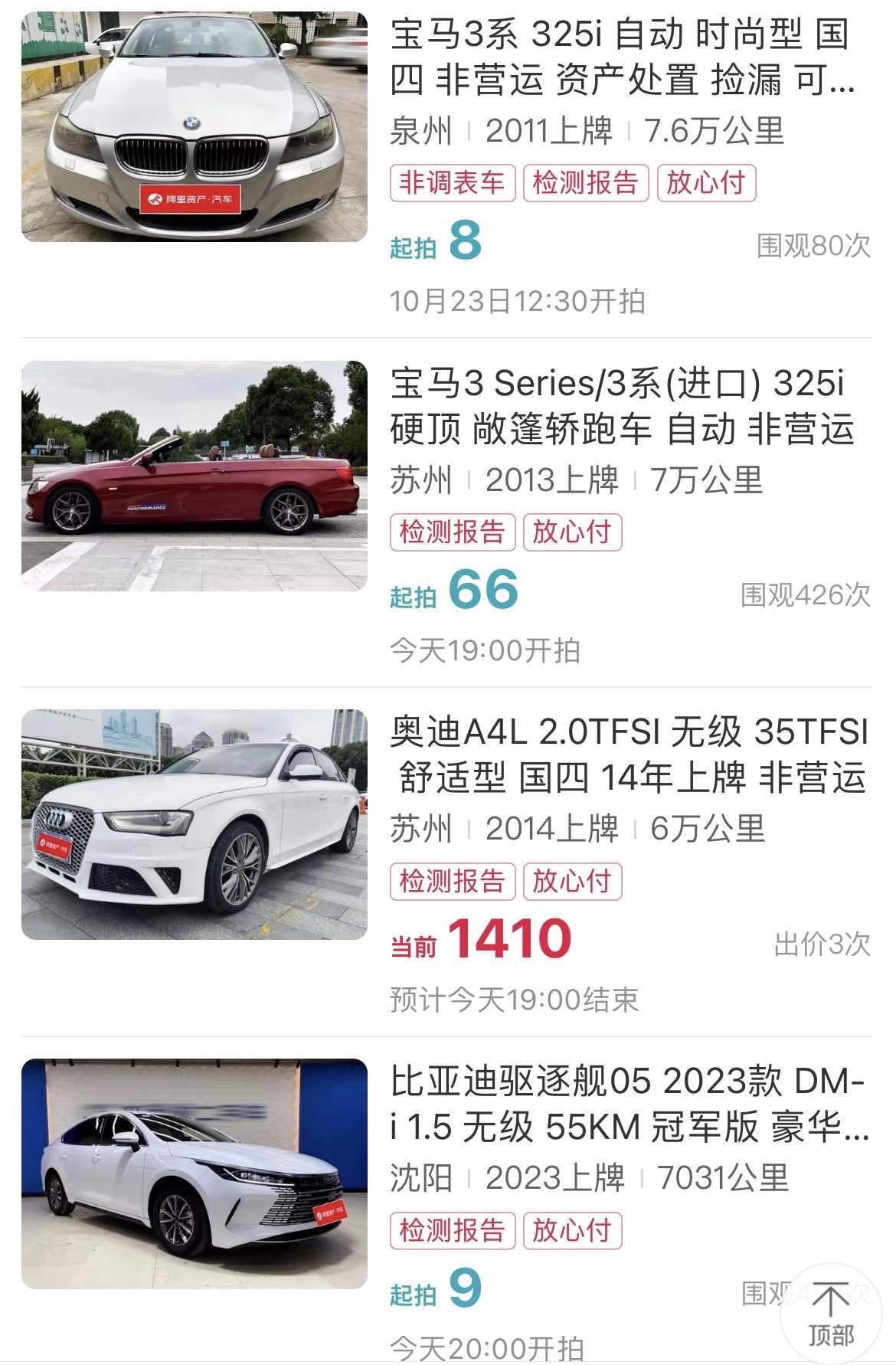 豪車1元起拍不鮮見