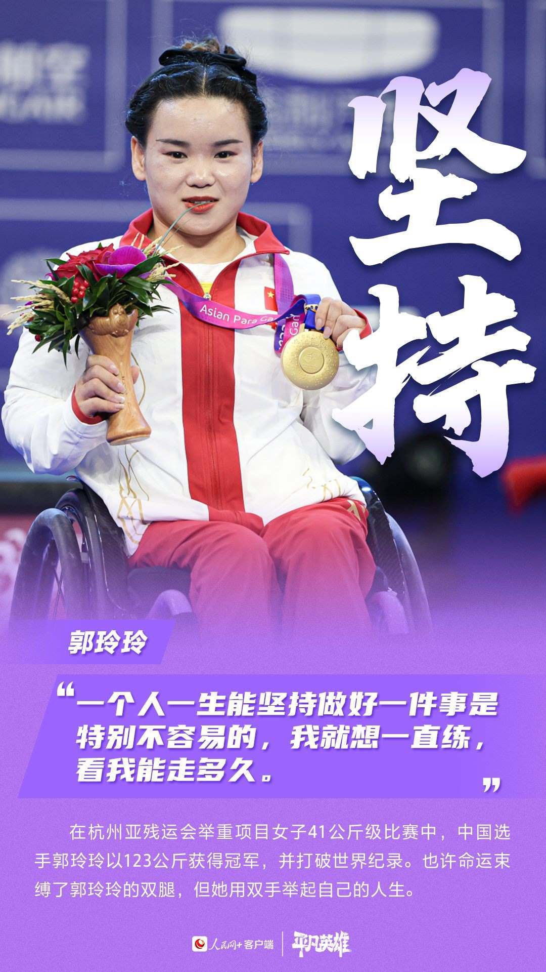 一張張寫(xiě)滿(mǎn)堅(jiān)韌的臉、一個(gè)個(gè)頑強(qiáng)拼搏的身軀,定格了許多震撼人心的瞬間。在杭州第4屆亞殘運(yùn)會(huì)的賽場(chǎng)上,中國(guó)運(yùn)動(dòng)員用不服輸、不放棄的精神,告訴我們“沒(méi)有什么不可能”。致敬每一位運(yùn)動(dòng)員。