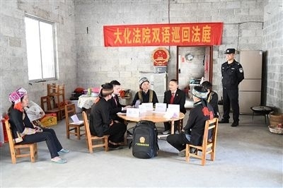 大化法院雙語(yǔ)巡回法庭到當(dāng)事人家中調(diào)解案件。