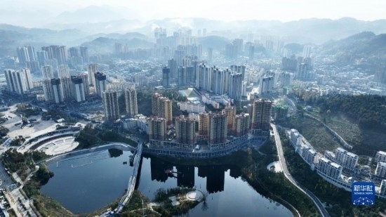11月29日拍攝的貴州省遵義市正安縣景色(無(wú)人機(jī)照片)。