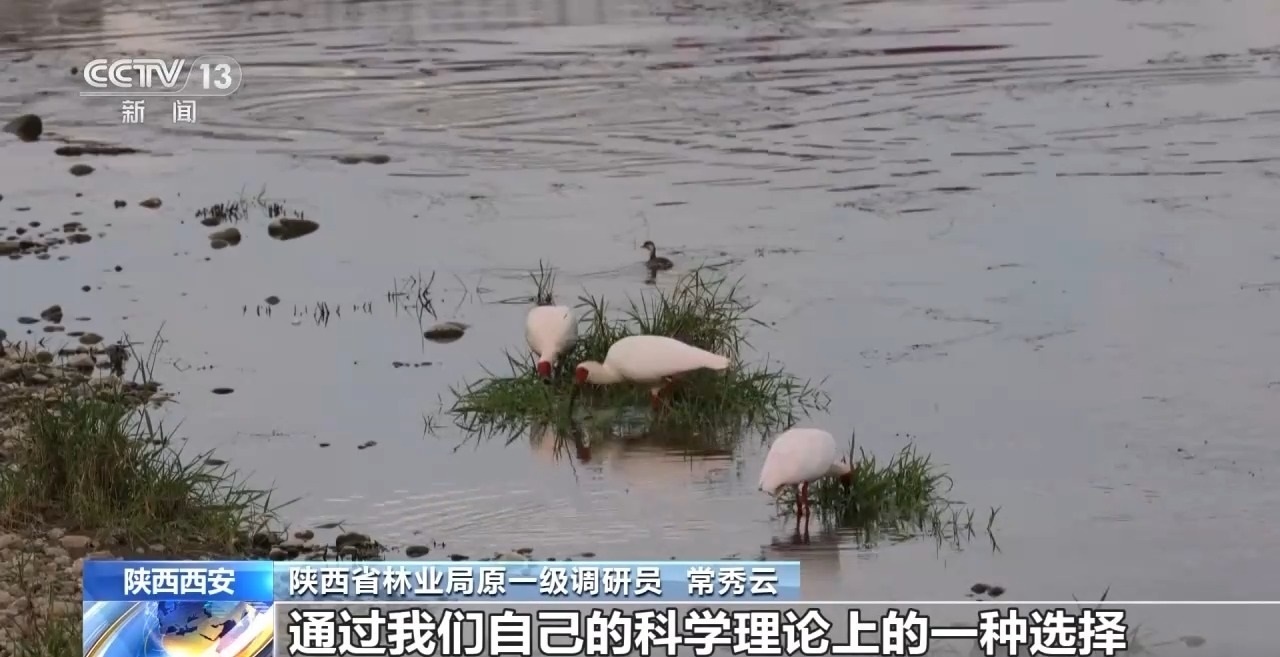 總臺記者 溫超:經過了四十多年的保護,朱鹮的種群數量從剛開始發(fā)現時的7只已經達到了現在全球的萬余只,同時野生種群的棲息地范圍從剛開始時的不足5平方公里已經達到了現在的1.6萬平方公里。