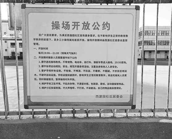 “坦白講,學校肯定是存在顧慮的。”賈習珍回憶,議事會上,校方的擔憂集中在兩方面:操場是新修的,能否得到很好的維護,人一多,衛(wèi)生等問題誰來管?另外,最大的顧慮還是安全。操場和學校樓體在同一個院子,之間沒有區(qū)隔,校方擔心孩子亂跑,看管不嚴產生危險。