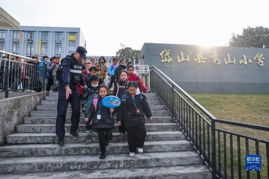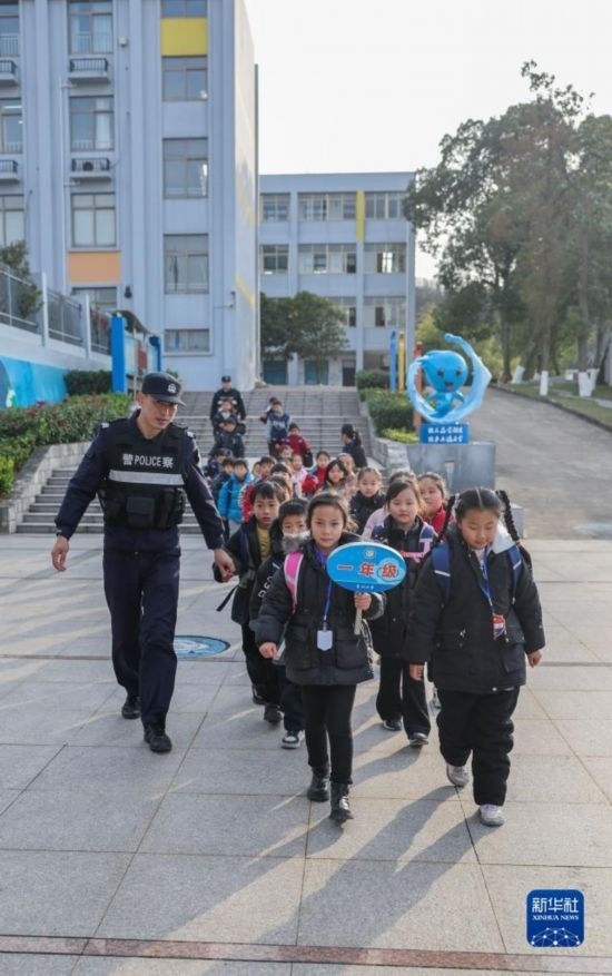 12月20日,秀山派出所民警在秀山小學放學時間參與“護學崗”維持秩序,同時接獨自放學的學生去“民生小鋪”。