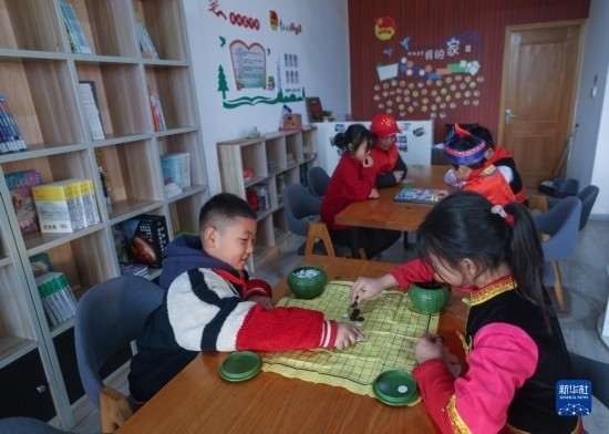 12月20日,秀山小學學生在“民生小鋪”等候家長時下棋。