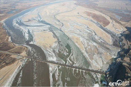 2023年12月24日,山西運(yùn)城,黃河臨猗段出現(xiàn)流凌,吳王古渡拆除浮橋,流凌從缺口處緩緩?fù)ㄟ^(guò)。