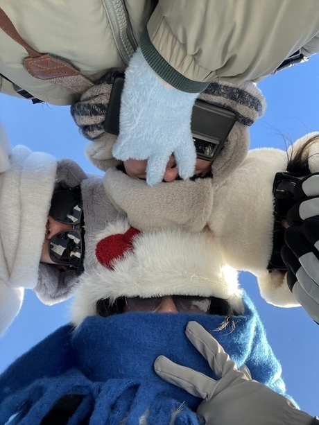 2023年12月底,在一位齊齊哈爾同學(xué)的帶領(lǐng)下,宋川和另外兩位南方同學(xué)來(lái)到東北?!靶⊥炼埂薄靶∮箢^”“小飯團(tuán)”“大苞米”一行戴上大皮帽,裹上厚圍巾,穿上在延吉批發(fā)市場(chǎng)現(xiàn)買(mǎi)的大棉褲,一路喝著延邊脊骨湯、吃著哈爾濱大肘子和齊齊哈爾燒烤,看著“大大大大大貓咪”東北虎,品味著打雪仗中“勝敗”的歡樂(lè),感受著長(zhǎng)白山和哈爾濱冰雪大世界的冷與“熱”。在東北這片新奇的冰雪天地,此前從未見(jiàn)過(guò)雪的宋川,平均每天要發(fā)3條朋友圈,“不用說(shuō)景點(diǎn),任何路邊的一捧雪都會(huì)是不期而遇的欣喜”。