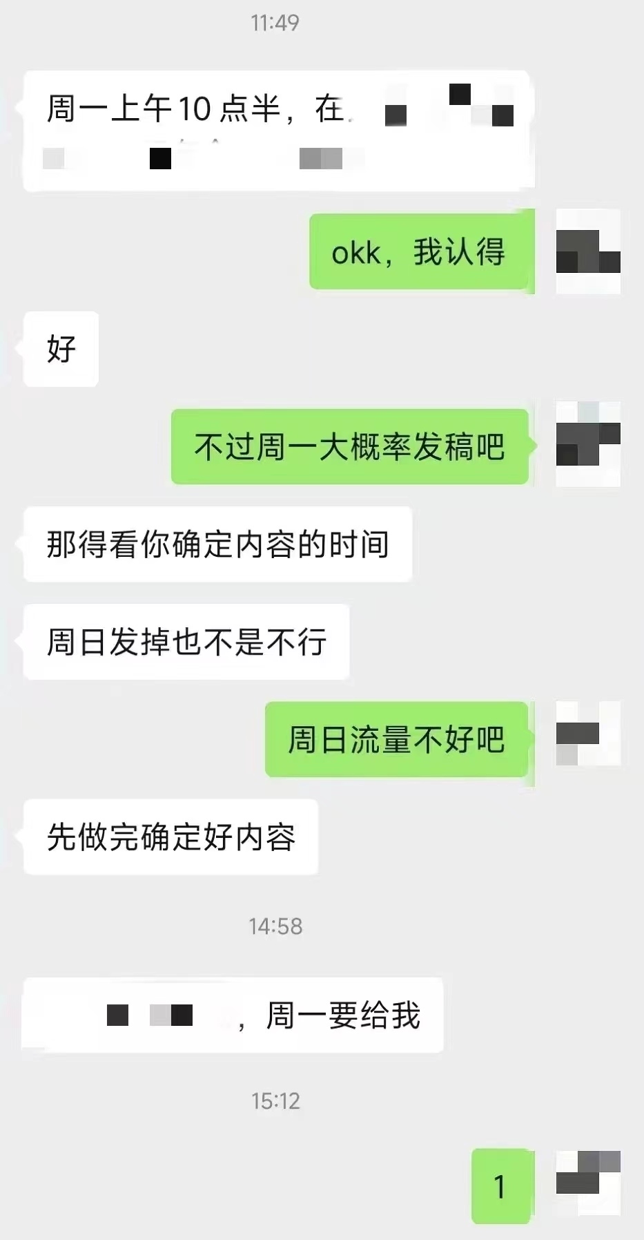 “周日流量不好吧?”她內(nèi)心氣不過,表面上卻只能迂回地勸對方改個(gè)主意。此時(shí)已經(jīng)是周五下午,距離原定的下班時(shí)間只剩下3個(gè)小時(shí)。但對方?jīng)]有理會(huì),繼續(xù)發(fā)來消息:“先做完確定好內(nèi)容?!?/p>