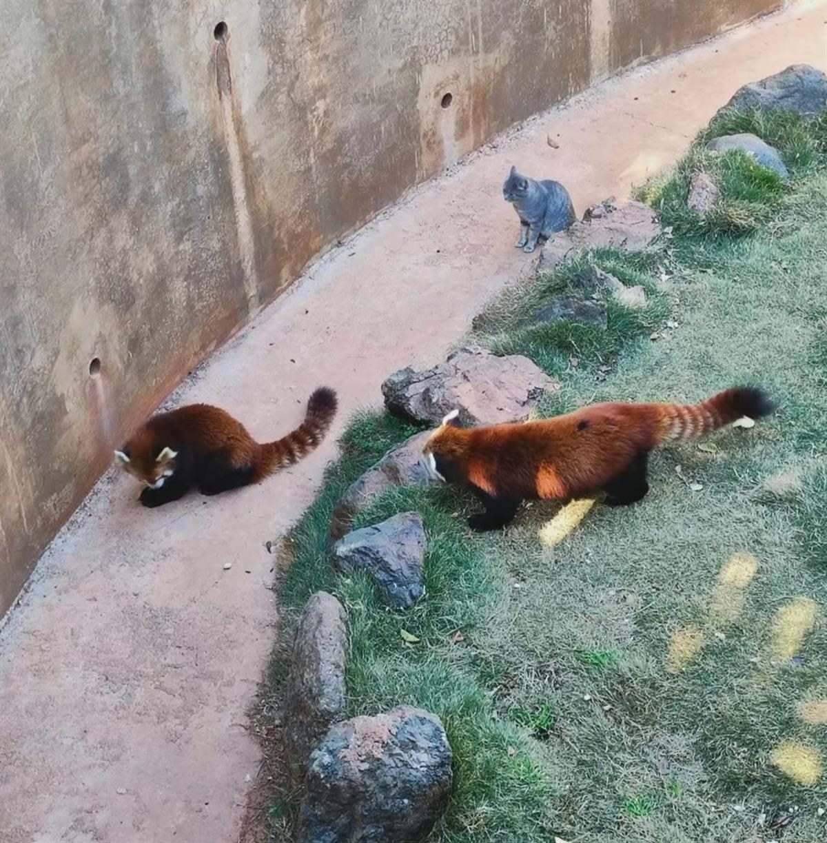 對此,有網(wǎng)友調(diào)侃稱,“莫非小貓咪替小熊貓?jiān)陧攳??”“這不是貍貓換太子嗎?”不過,也有很多網(wǎng)友表示,這里是大理洱海公園的動(dòng)物園區(qū),小熊貓園內(nèi)養(yǎng)了兩只小熊貓,它們和這只貓咪和諧相處很久了,只是小熊貓經(jīng)常爬到樹上去玩,可能沒有貓咪那么顯眼。