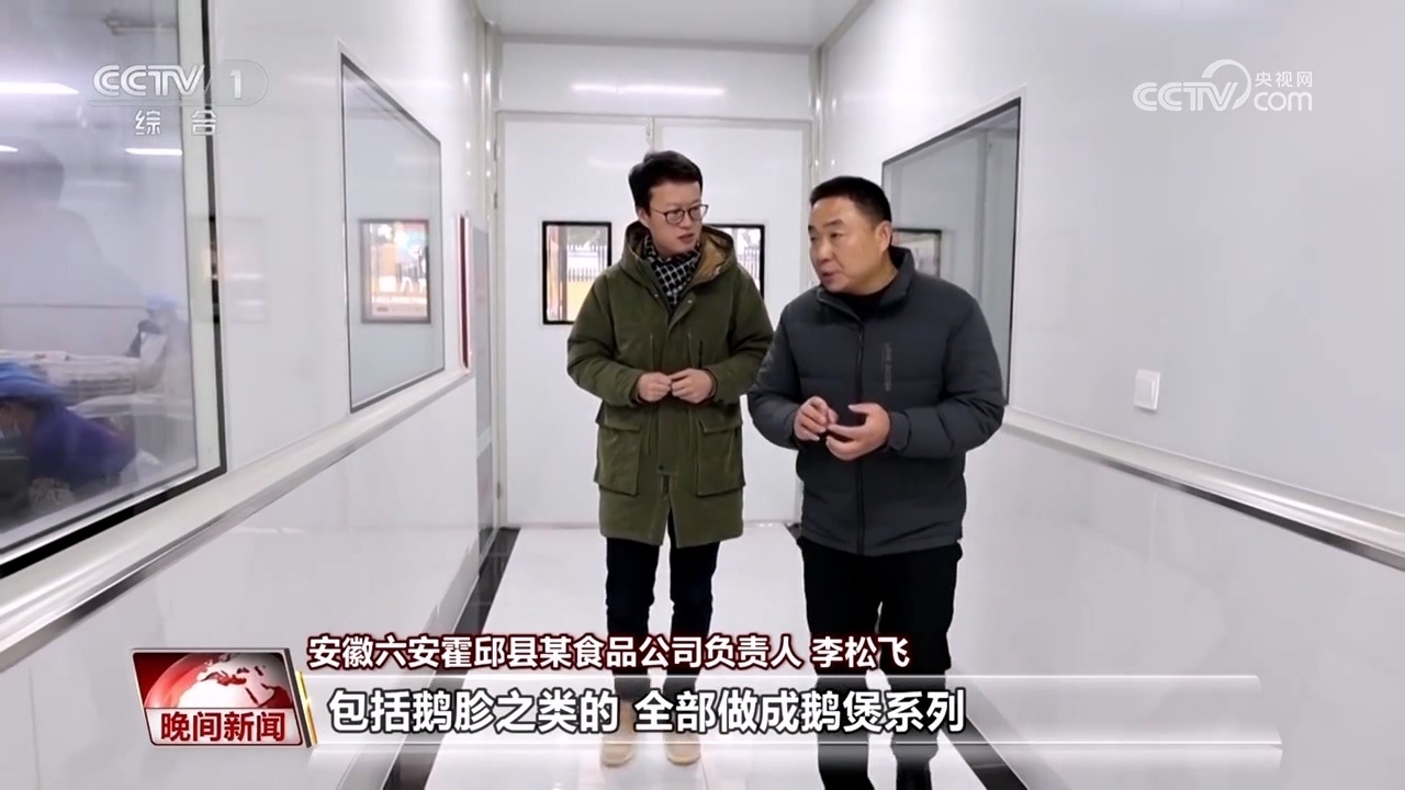 安徽六安霍邱縣某食品公司負(fù)責(zé)人 李松飛:我們?nèi)×所Z肝之后,加上鵝肉、鵝脖、鵝頭這些東西,包括鵝胗之類,全部做成鵝煲系列,我們現(xiàn)在每天要用4000到5000只鵝。