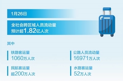 1月26日,2024年春運(yùn)大幕拉開。當(dāng)日全社會(huì)跨區(qū)域人員流動(dòng)量預(yù)計(jì)超1.82億人次,其中全國(guó)鐵路預(yù)計(jì)發(fā)送旅客1060萬(wàn)人次,公路16971萬(wàn)人次,民航超200萬(wàn)人次,水路52萬(wàn)人次?!拌F路空水”密切合作,智能技術(shù)廣泛應(yīng)用,旅途服務(wù)貼心溫馨……各方協(xié)同,保障旅客安全順暢出行。