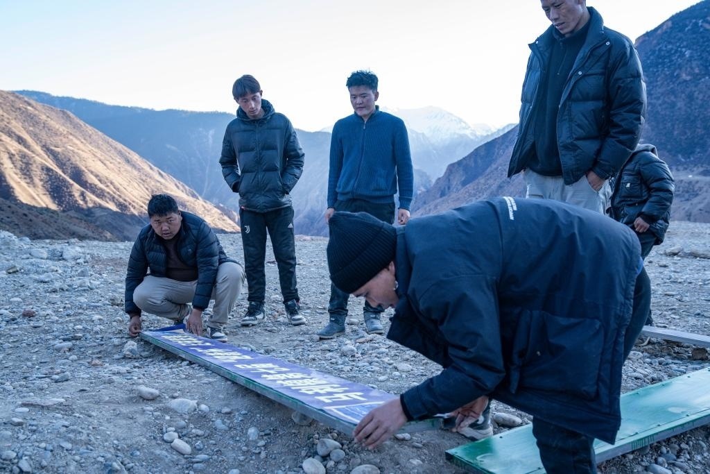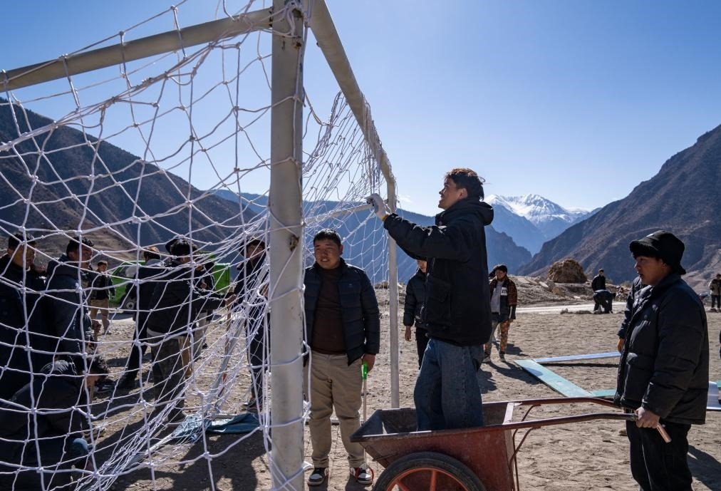 修好啦,嘎瑪群美帶著摩托車隊(duì)馱著球門興沖沖回村