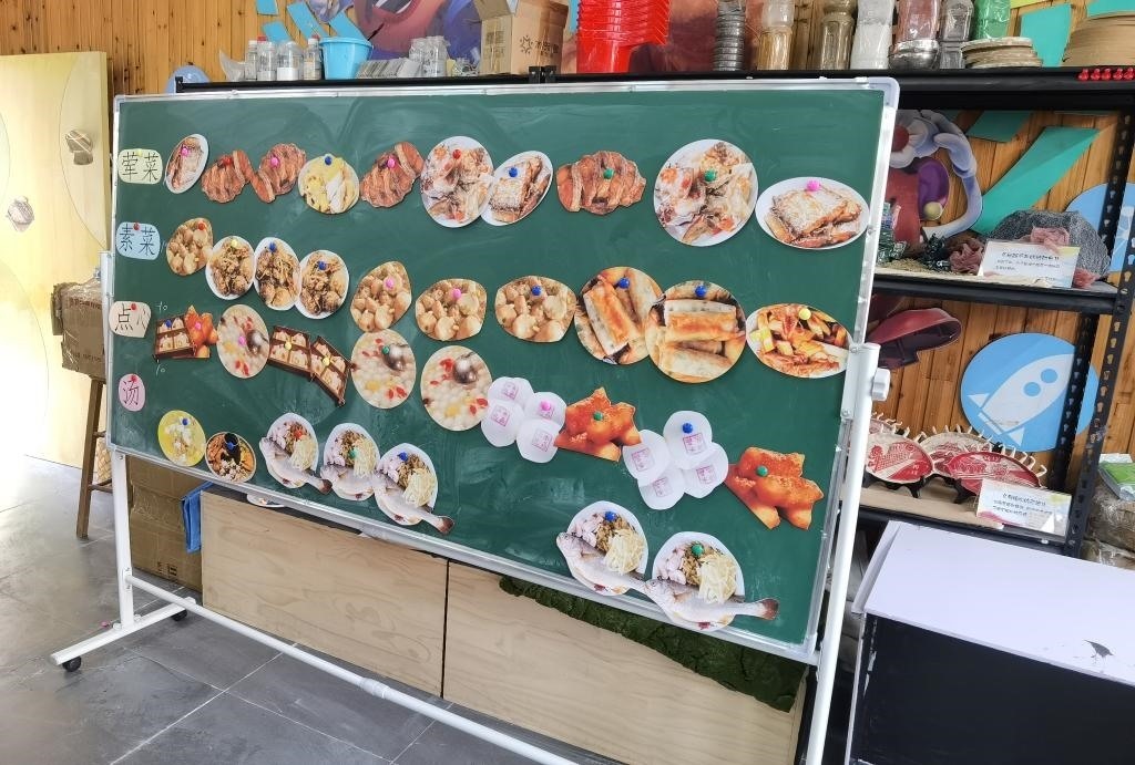 在教室內(nèi)另一張小桌上,擺放著小蔥、馬鈴薯、竹筍等各類農(nóng)產(chǎn)品實(shí)物。一位教師問學(xué)生,“你知道哪個(gè)是竹筍嗎?竹筍一般種在哪里?”