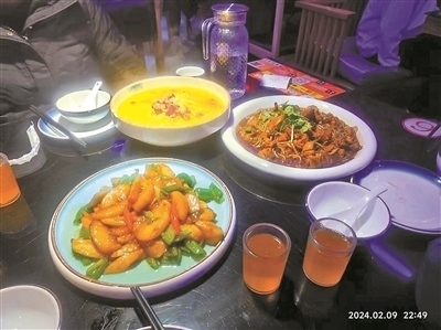 幾個(gè)小時(shí)前,他們剛剛在酒店的中餐廳享用了年夜飯,菜單包括:青檸氣泡蝦、蟹粉八珍手工面筋、藿香江團(tuán)、松露水晶等,一共9道特色菜。
