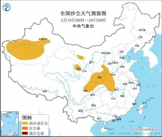 中央氣象臺(tái)2月19日6時(shí)繼續(xù)發(fā)布沙塵暴藍(lán)色預(yù)警:預(yù)計(jì)2月19日8時(shí)至20日8時(shí),新疆南疆盆地、內(nèi)蒙古西部、青海東北部、陜西中南部、山西西南部、河南西部、湖北中西部、四川盆地中北部等地的部分地區(qū)有揚(yáng)沙或浮塵天氣。