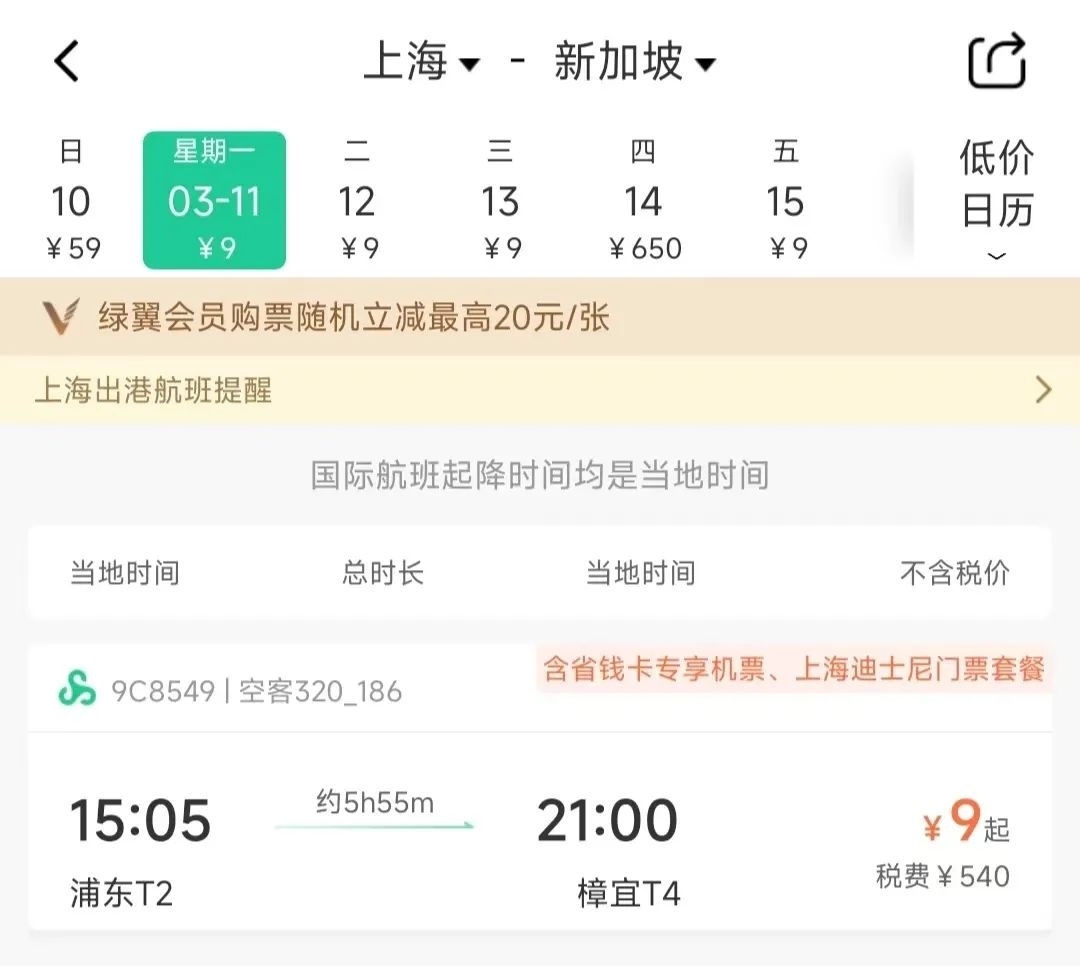 值得注意的是,這張截圖來自某訂票平臺(tái),如果查看春秋航空官網(wǎng)或者APP,并沒有不含稅0元的票價(jià),而是最低9元(不含稅)。