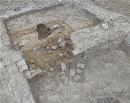 此外,考古隊員在最大的房址發(fā)現方形磚砌祭臺。專家表示,磚砌祭臺屬熱水墓群中的首次發(fā)現,祭臺中發(fā)現大量磚塊。通過陵園及祭祀建筑的規(guī)模、數量等線索推測,這個墓葬的規(guī)格、墓主人的身份等級要高于2018血渭一號墓。