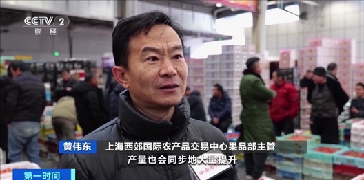 上海西郊國際農(nóng)產(chǎn)品交易中心果品部主管 黃偉東:草莓隨著天氣的轉(zhuǎn)暖,產(chǎn)量會大量提升,4月份左右量比較大,價格也會比較平穩(wěn)。