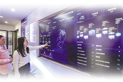 古蕩街道民生綜合體內(nèi),市民使用智慧屏查看民生綜合體相關(guān)情況。
