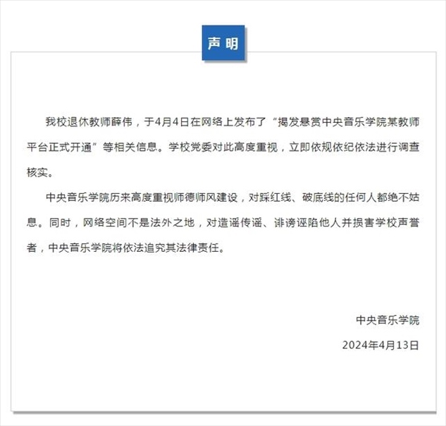 ·中央音樂學(xué)院回應(yīng)學(xué)校系主任被舉報:立即調(diào)查,絕不姑息。