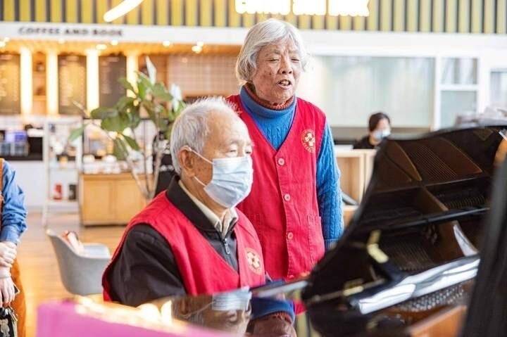 老人名叫葉明倫,是當(dāng)?shù)芈窐蛐W(xué)的退休教師,也是臺(tái)州恩澤醫(yī)院“音樂(lè)療吧”的鋼琴志愿者,今年已有85歲。每周一上午,他都會(huì)乘坐公交車,從5公里外的家中趕到醫(yī)院,為患者們義務(wù)彈鋼琴。