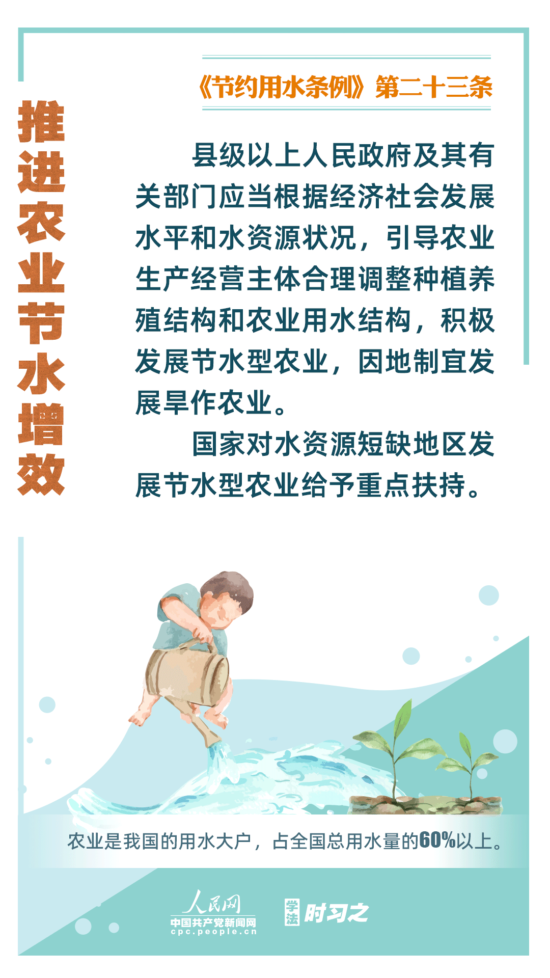 《節(jié)約用水條例》(以下簡稱《條例》)將于2024年5月1日起施行,這是我國首部節(jié)約用水行政法規(guī)。節(jié)約用水,是解決我國水資源短缺問題的根本措施,《條例》以水資源可持續(xù)利用為目標(biāo),建立健全節(jié)水制度政策體系,以法治方式和法治途徑實(shí)現(xiàn)水資源節(jié)約集約高效利用,促進(jìn)全社會(huì)節(jié)約用水。