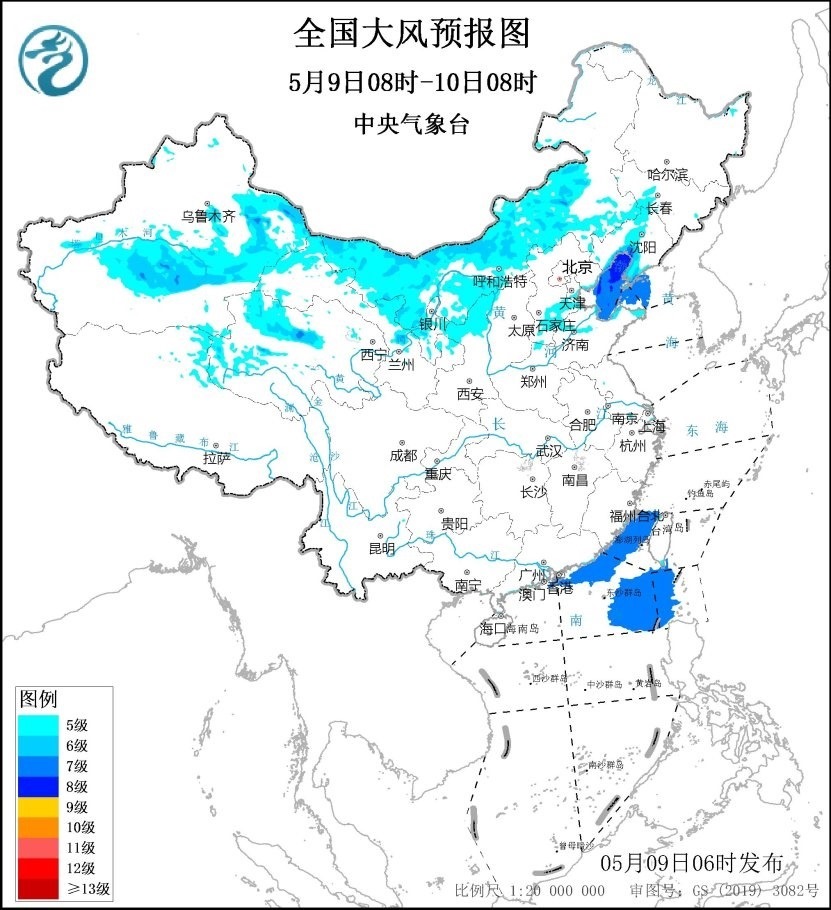 需要注意的是,今明兩天,北方部分地區(qū)風(fēng)力加大,中央氣象臺今晨繼續(xù)發(fā)布大風(fēng)藍(lán)色預(yù)警。預(yù)計(jì)遼寧中北部、吉林中部、內(nèi)蒙古大部、新疆東部和南疆盆地、青海西部、甘肅西部、寧夏大部、陜西北部、河北南部等地的部分地區(qū)有5~6級、陣風(fēng)7~9級的大風(fēng)。