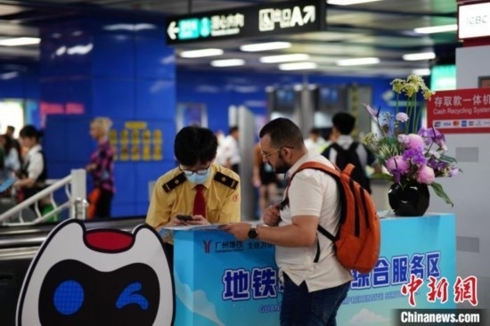 廣交會(huì)期間,廣州地鐵提供更便捷、多元化的出行保障,包括設(shè)置“綜合服務(wù)區(qū)”,提供現(xiàn)場(chǎng)咨詢、外語(yǔ)翻譯、票務(wù)導(dǎo)購(gòu)等多元服務(wù)。廣州地鐵集團(tuán)供圖