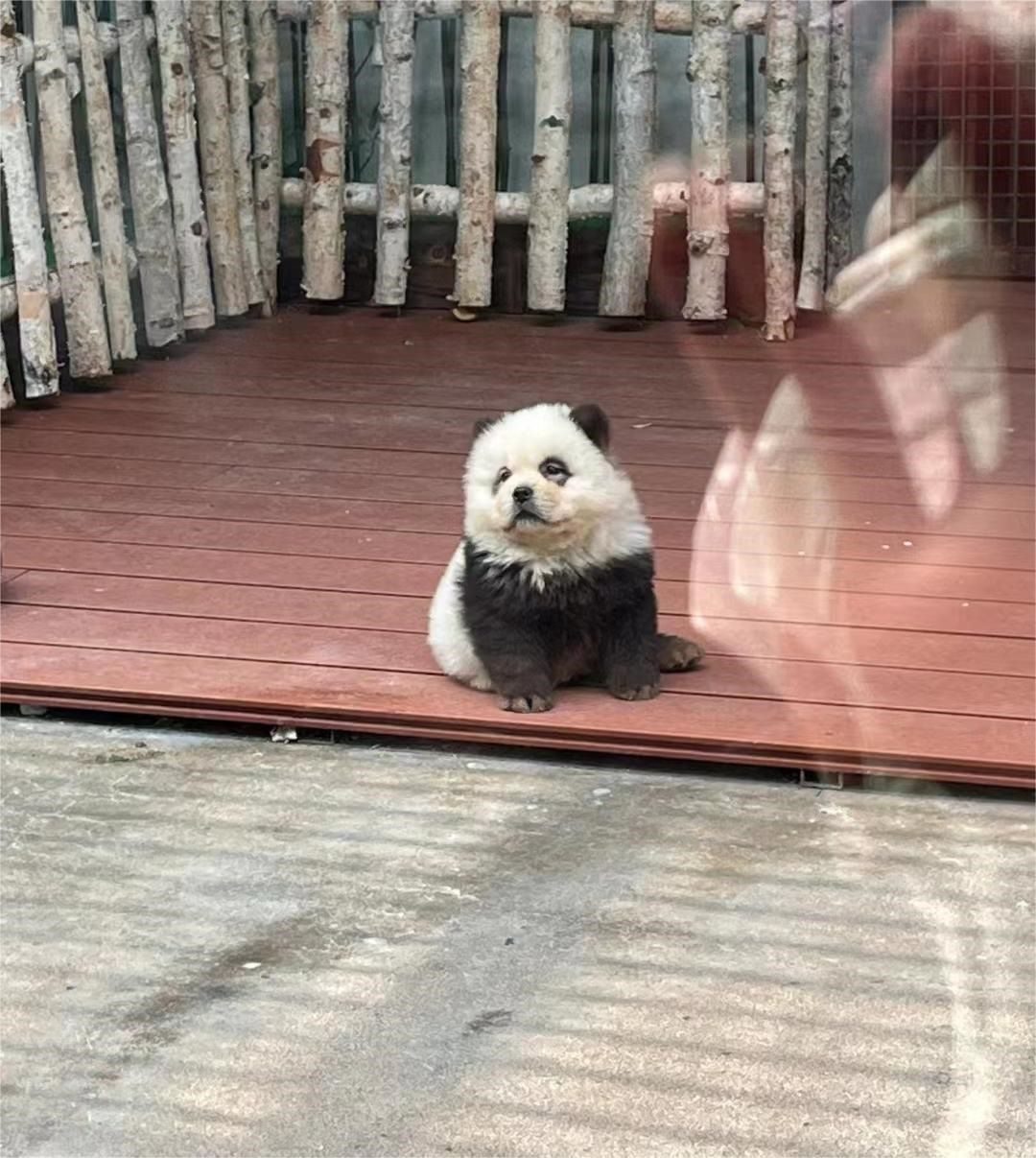 近日,有游客發(fā)視頻稱,在江蘇泰州動(dòng)物園院內(nèi),出現(xiàn)了兩只奇怪的“熊貓”。其毛發(fā)黑白相間,外形與熊貓相似,但走起路來的姿勢(shì)卻像小狗。在網(wǎng)友曬出的泰州動(dòng)物園門票上,印有“熊貓犬見面會(huì)”字樣,有人認(rèn)為將狗染成熊貓的樣子吸引客流,有虛假宣傳之嫌。對(duì)此,泰州市醫(yī)藥高新區(qū)市場(chǎng)監(jiān)管局稽查大隊(duì)工作人員表示,“熊貓犬”沒有標(biāo)注是熊貓,不涉及虛假宣傳。5月7日,澎湃記者聯(lián)系泰州動(dòng)物園,工作人員稱,兩只“熊貓犬”是動(dòng)物園領(lǐng)導(dǎo)引進(jìn)來的,在引進(jìn)的時(shí)候就已經(jīng)被染好色了,對(duì)于其他的細(xì)節(jié)并不清楚。