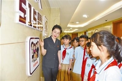 近日,重慶市萬州區(qū)人民法院邀請萬州區(qū)中加友誼小學(xué)20余名學(xué)生、教師和家長代表走進(jìn)萬州區(qū)法院家風(fēng)展陳館,通過講解家訓(xùn)故事、解讀真實案例、觀看普法教育片、參觀家事審判庭等方式,引導(dǎo)每個家庭加強家風(fēng)建設(shè),傳承傳統(tǒng)美德,培育優(yōu)良家風(fēng),促進(jìn)家庭和睦。全國人大代表傅山祥參加此次普法宣傳活動。圖為法院干警向?qū)W生講解家庭幸福的內(nèi)涵。