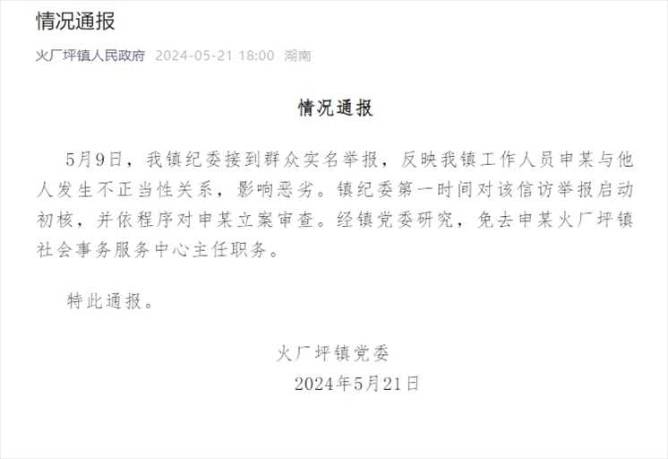 ·“公職人員婚內(nèi)出軌女子”照片傳出,官方通報:涉事人員免職。