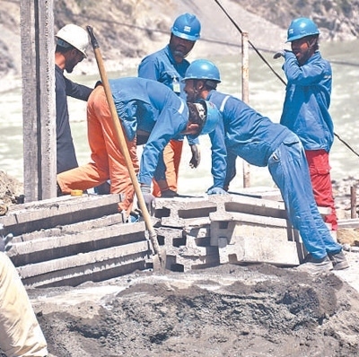 為保障喀喇昆侖公路暢通,巴中兩國工程人員正在進(jìn)行施工。本報(bào)巴基斯坦分社 賽義德·邁赫迪攝