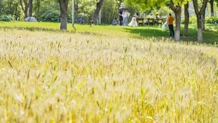 而在湖北武漢園博園景區(qū),也有一塊上千平方米的麥地。如今,這塊麥地上的小麥已經(jīng)成熟,麥穗飽滿,煞是喜人,讓人油然想到一句古詩(shī):“最愛(ài)壟頭麥,迎風(fēng)笑落紅。”據(jù)報(bào)道,園方表示,今年擬與園區(qū)研學(xué)組合作,將開(kāi)展割麥子活動(dòng)。研學(xué)導(dǎo)師會(huì)對(duì)孩子們進(jìn)行麥子科普,以及如何正確割麥(割麥、捆麥、運(yùn)麥、拾麥)等,同時(shí)還會(huì)用麥穗插花。