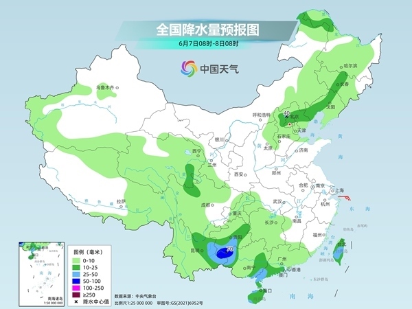 昨天,受高空槽東移影響,華北、東北一帶多陣雨或雷陣雨天氣;南方依然降雨頻繁,較強(qiáng)降雨主要出現(xiàn)在華南等地部分地區(qū)。監(jiān)測(cè)顯示,廣東中西部、廣西東部和南部、云南中南部、福建北部、浙江南部以及海南島北部等地部分地區(qū)出現(xiàn)大到暴雨,廣西貴港、廣東湛江、云南普洱局地大暴雨;內(nèi)蒙古東南部、北京東部、天津中部、黑龍江東南部、青海東北部、甘肅中部等地部分地區(qū)出現(xiàn)中到大雨,內(nèi)蒙古興安盟、黑龍江哈爾濱局地暴雨。