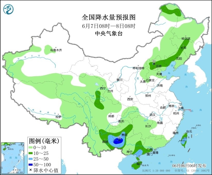 明天,內(nèi)蒙古東北部、東北地區(qū)西部、青海南部、華北北部、川西高原北部、西南地區(qū)南部、華南北部和南部、臺灣島等地部分地區(qū)有中到大雨,其中,貴州西南部、云南東南部、廣西西北部等地部分地區(qū)有暴雨(50~70毫米)。